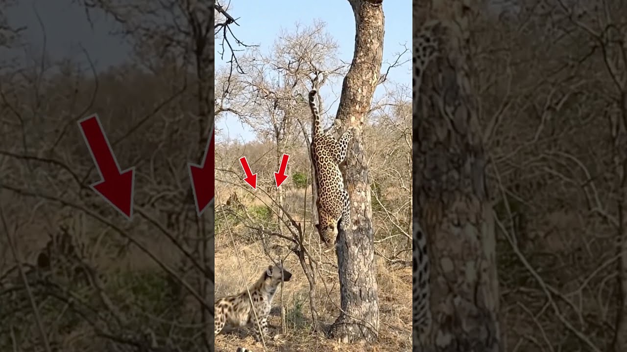 Incredible Leopard Jumps From Tree To Attack Hyena LeopardAttack Brave