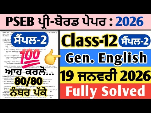 Pseb 12th English Pre Board Paper 2026 Fully Solved General Preboard