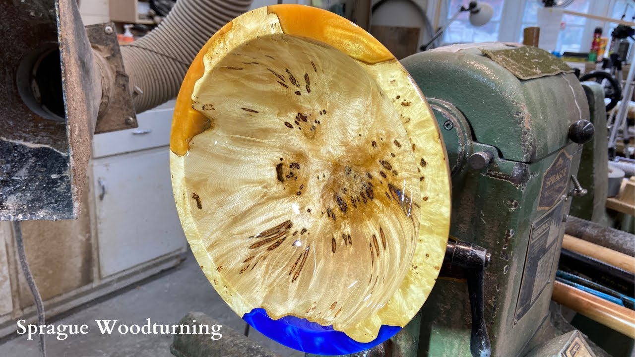 Woodturning Maple Burl With Rainbow Blue And Gold Tinted Resin