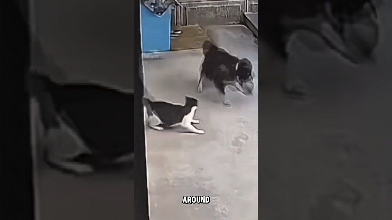 CCTV Shocker Brave Cat Battles Dog To Rescue Her Baby Dogvscatviralvideo Catshorts Rarecat