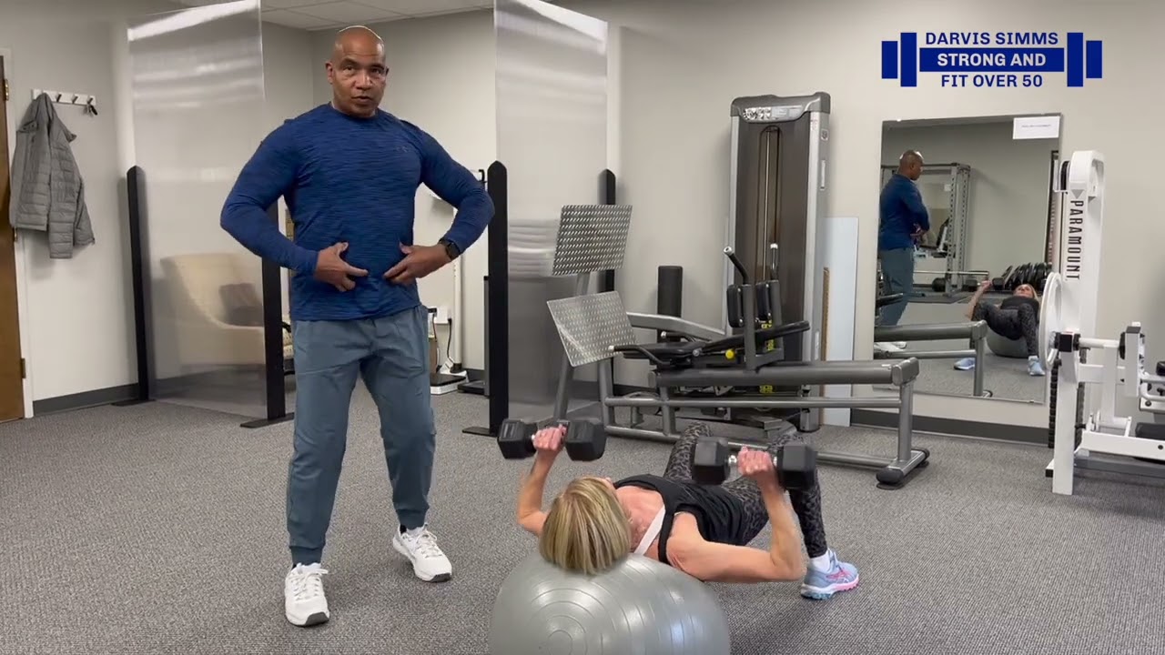 Strength Over 50 Dumbbell Chest Press On A Therapeutic Ball