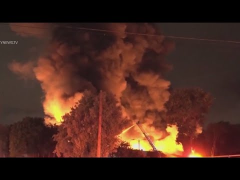 Large 3 Alarm Commercial Fire Breaks Out In Burbank