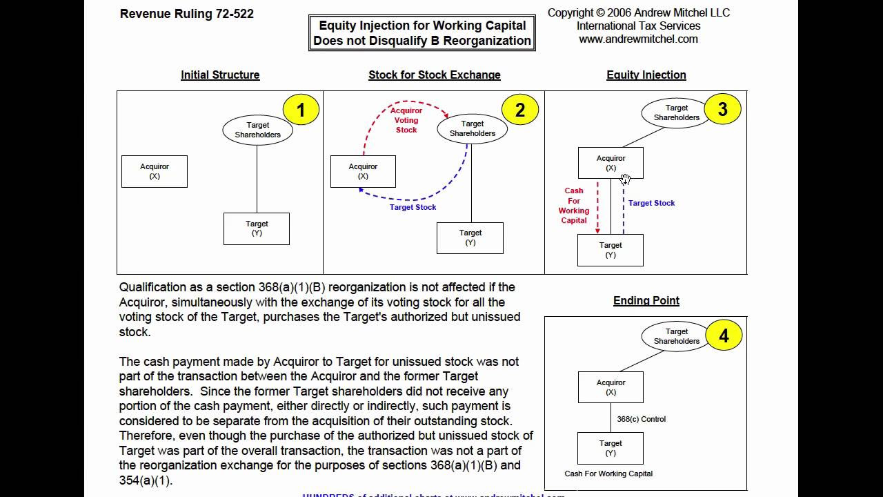 Rev Rul 72 522 Good B Reorganization With Post Acquisition Cash Contribution Into Target