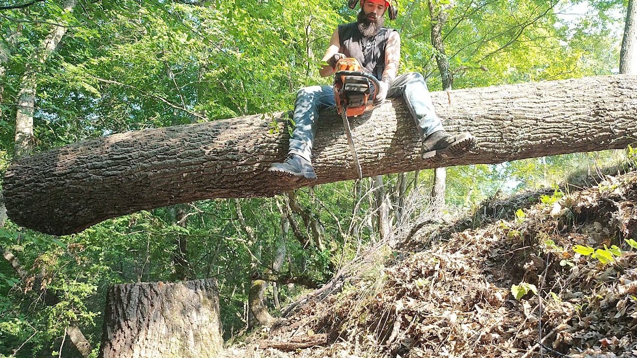Cutting Down Trees With Chainsaw Husqvarna AXEHOLE LOGGER